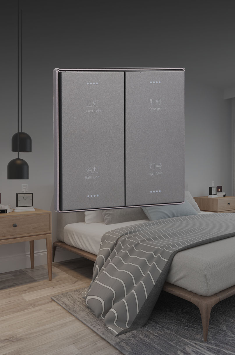 為了設計出一款整體具有層次感的開關面板來搭配現代所有不同裝修風格的酒店,我們沿用古典式器具包邊和現代簡潔設計概念,搭配質感細膩的金屬拉絲面板,給人時尚前衛的視覺效果,突顯精巧靈動的典雅氣質。